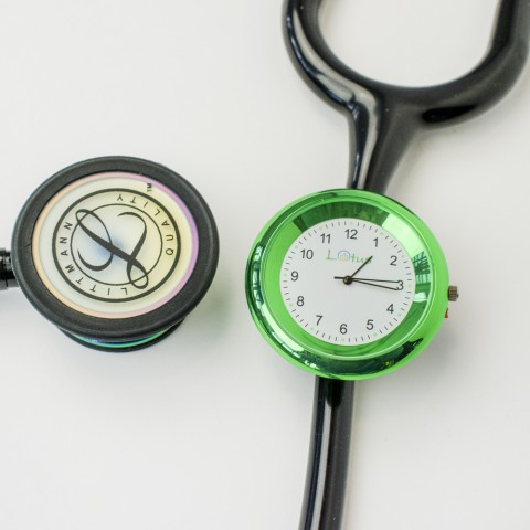 Ceas pentru doctori, cu prindere pe stetoscop, Lotus, verde