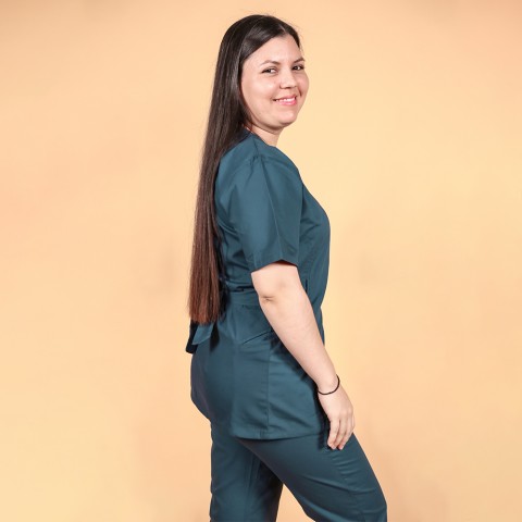 Bluza cu aspect elegant, confort maxim, rezistenta sporita, destinata industriei alimentare, farmaceutice sau spitalelor, ideal pentru utilizarea de catre medici, asistente, policlinici, etc. Bluza comoda si lejera, material usor, placut la atingere, nu se sifoneaza, isi pastreaza tinuta culorii, fiind rezistenta la spalare. Croiala dreapta, maneca scurta, inchidere la spate cu cordon.