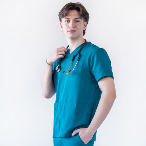Bluza medicala Lotus Flex, stretch, turcoaz inchis, TRS-NP16
