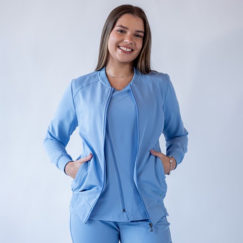 Jacheta medicala cu fermoar Lotus Flex, stretch, albastru ciel, TRS-JK10
