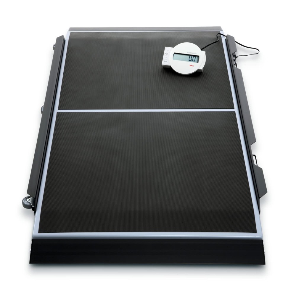 seca 657 este un cantar profesional conceput pentru a oferi confort si precizie maxima pacientilor care nu se pot deplasa. Datorita platformei extra-largi si a capacitatii mari de 300 kg, cantarirea se face usor, direct pe targa, carucior sau scaun rulant, fara mutarea pacientului.