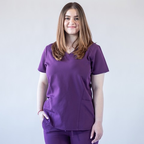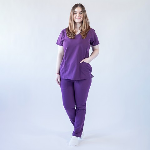 Este o optiune excelenta pentru uniformele medicale, mai ales pentru cei care isi doresc un echilibru intre functionalitate, confort si stil.