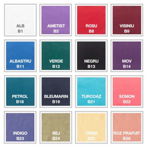 Produsele au o gama variata de culori si sunt realizate din materiale agreate de normele UE: 100% polyester.