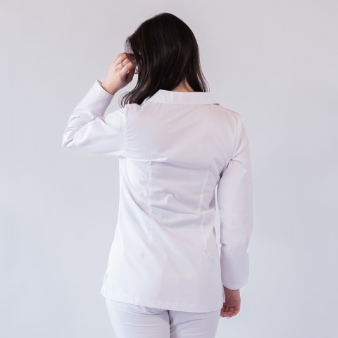 Jacheta medicala de dama, cu rever, maneca lunga si capse, Lotus, alb