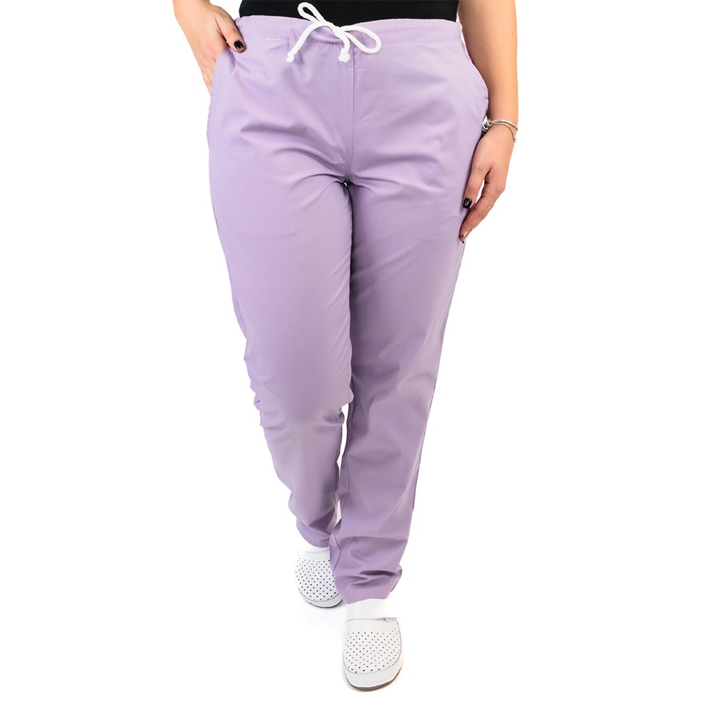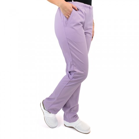 Pantalonii au un design elegant cu doua buzunare laterale, elastic la spate si cu snur in fata.