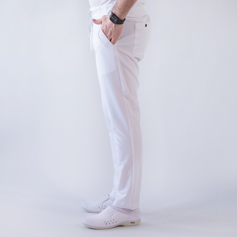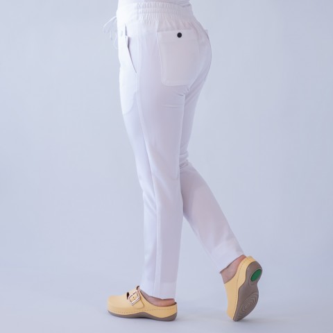 Pantaloni medicali Lotus Flex, stretch, cu snur, alb, TRS-SP9