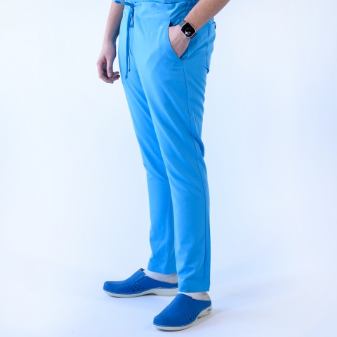Pantaloni medicali Lotus Flex, stretch, cu snur, albastru deschis, TRS-SP9
