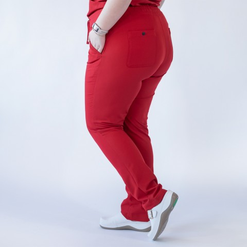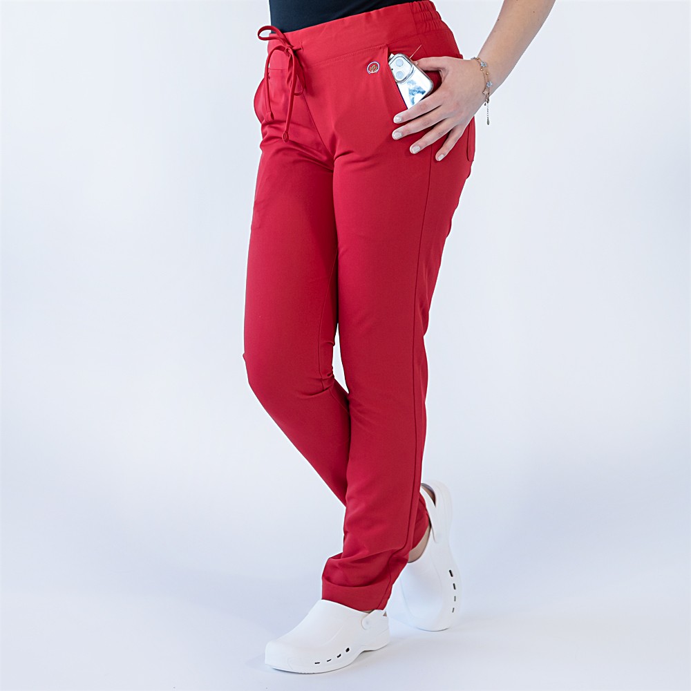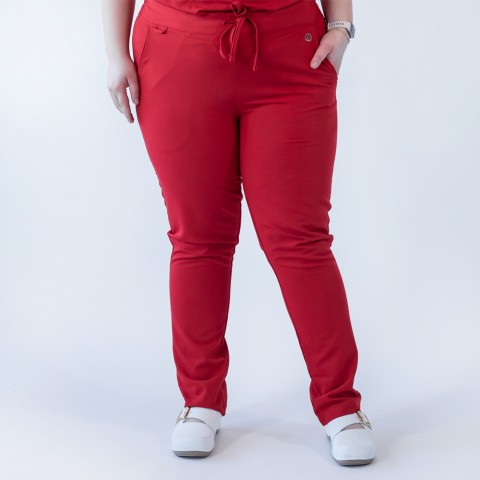 Pantaloni medicali Lotus Flex, stretch, cu snur, rosu, TRS-SP9
