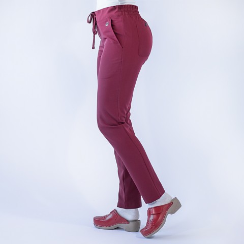Pantaloni medicali Lotus Flex, stretch, cu snur, visiniu, TRS-SP9