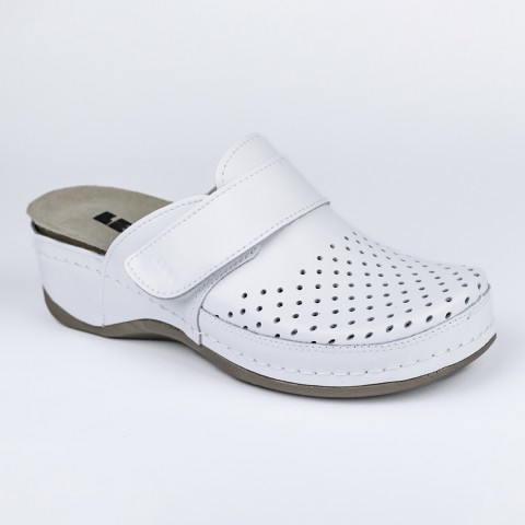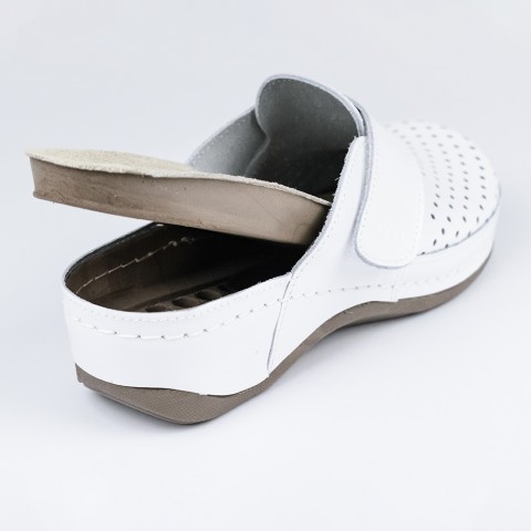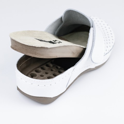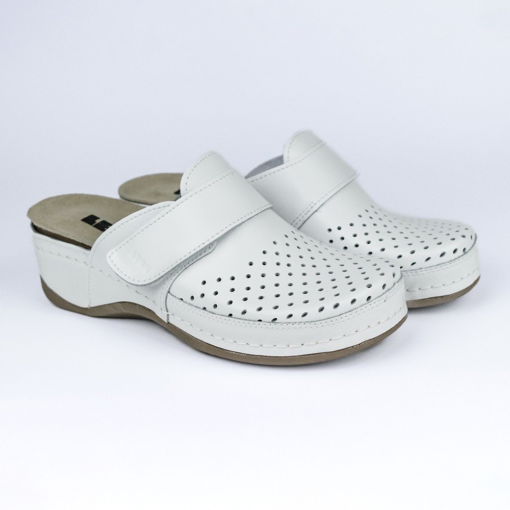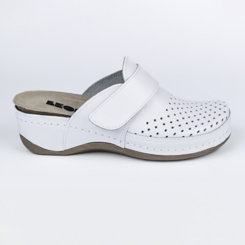 Saboti medicali Leon 2022, de dama, din piele, alb
