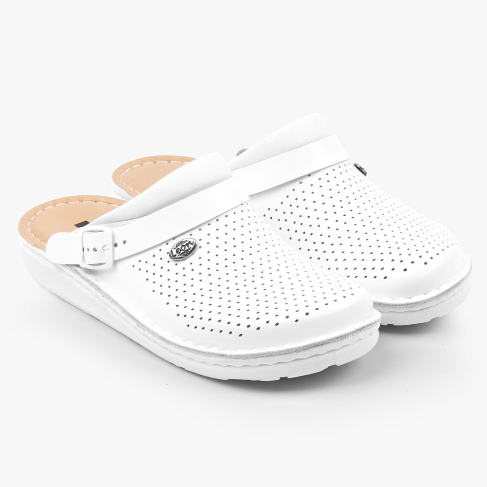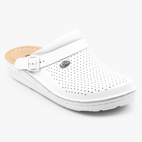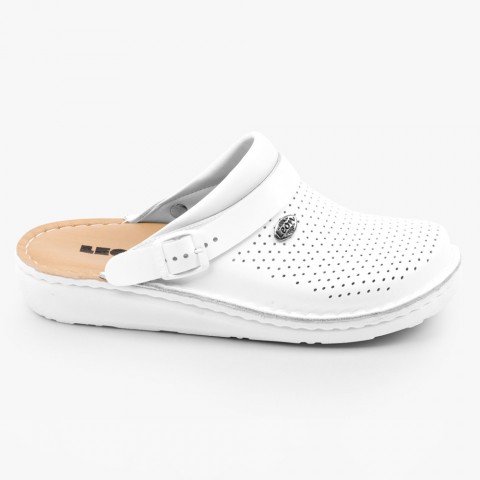 Saboti medicali, de dama, din piele, cu bareta, Leon 300M, alb