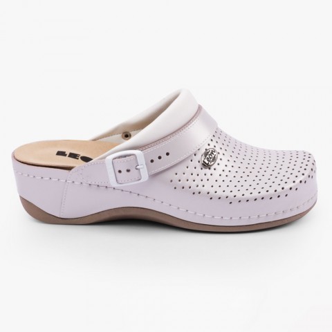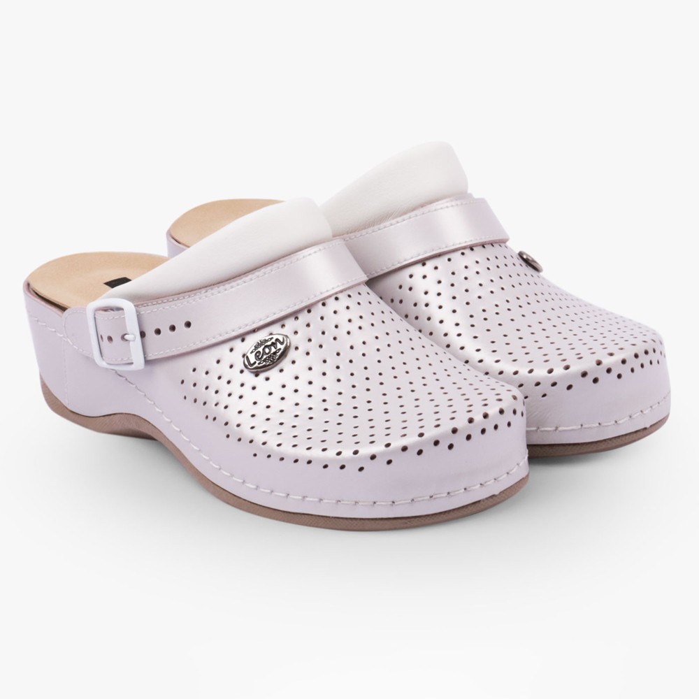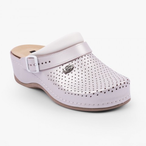 Saboti medicali, de dama, din piele, cu bareta si brant detasabil, Leon 2023, perla