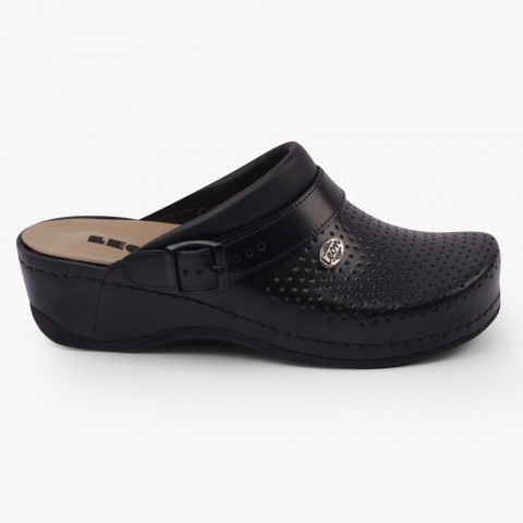 Saboti medicali, de dama, din piele, cu bareta si brant detasabil, Leon 2023, negru