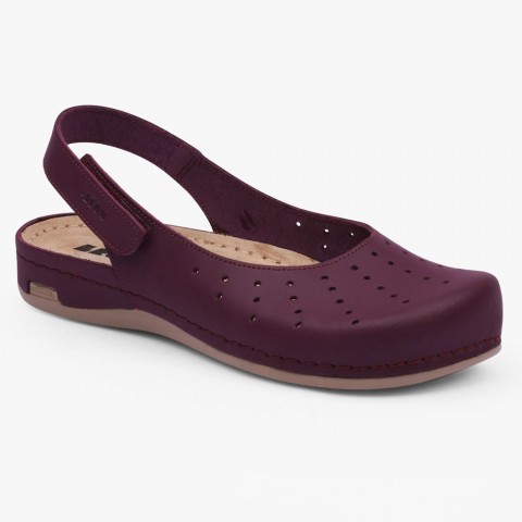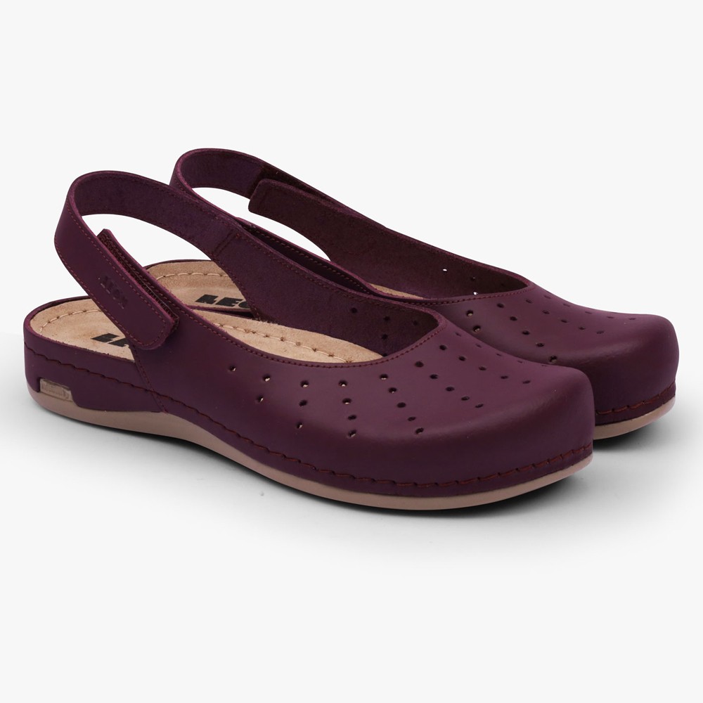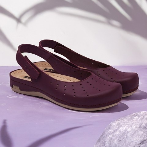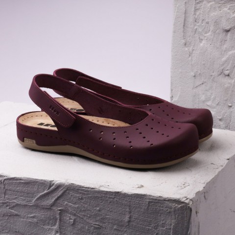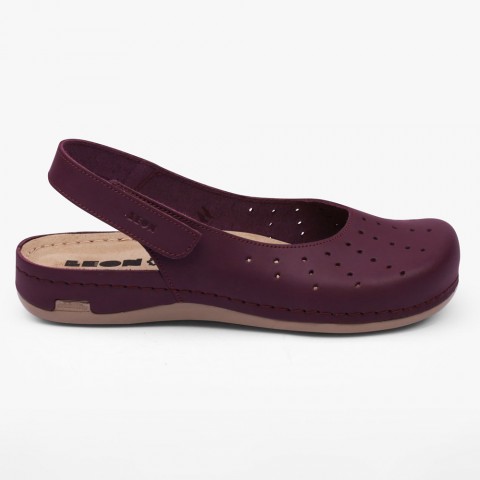 Saboti medicali, de dama, din piele, cu bareta, Leon 967 Bakkar, bordo mat