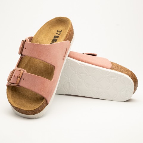 Saboti dama, de vara, din piele, Leon 4010, roz