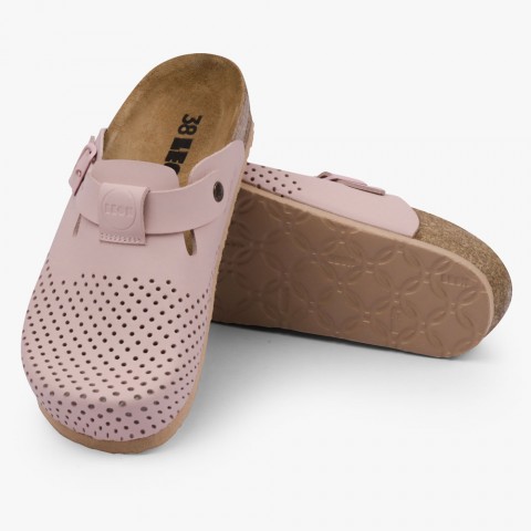 Saboti dama, din piele, Leon 4250 Bakkar, roz mat