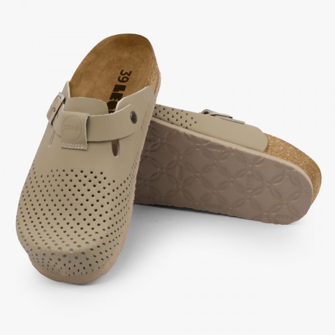 Saboti dama, din piele, Leon 4250 Bakkar, bej mat