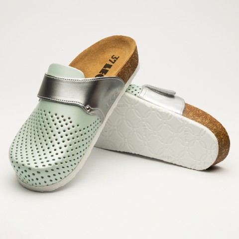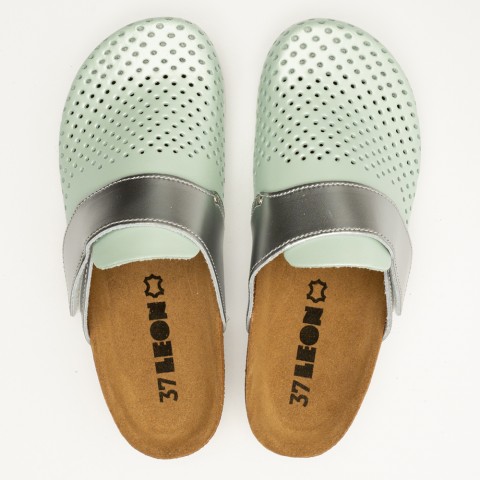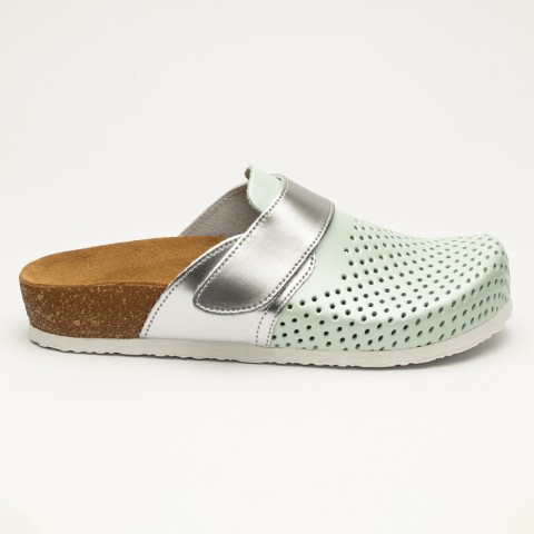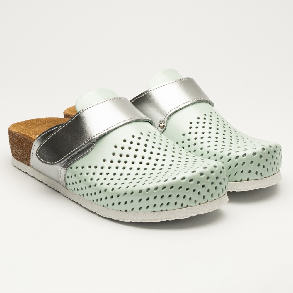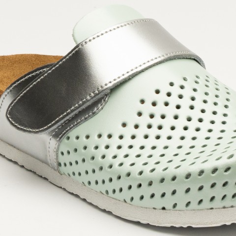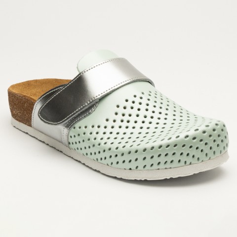 Saboti medicali Leon 4251, de dama, din piele, verde perlat/argintiu