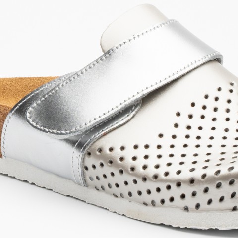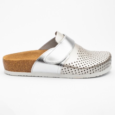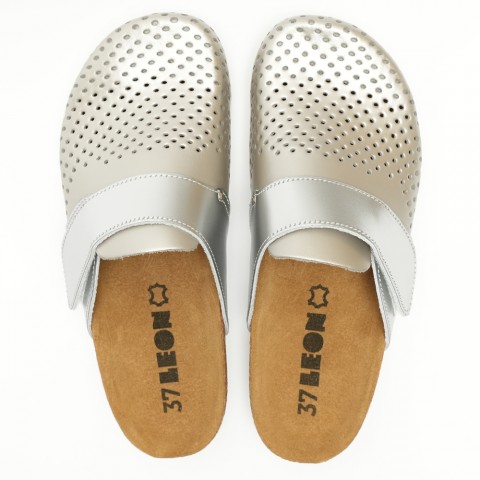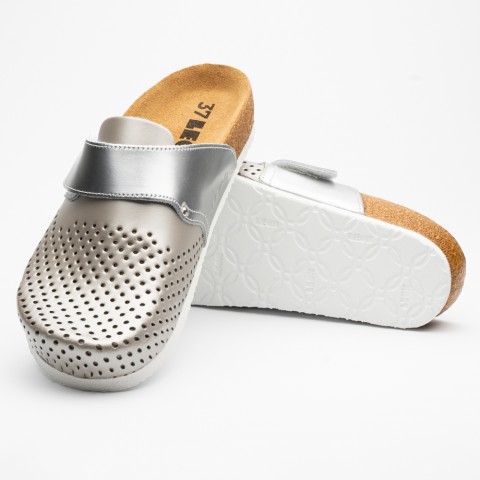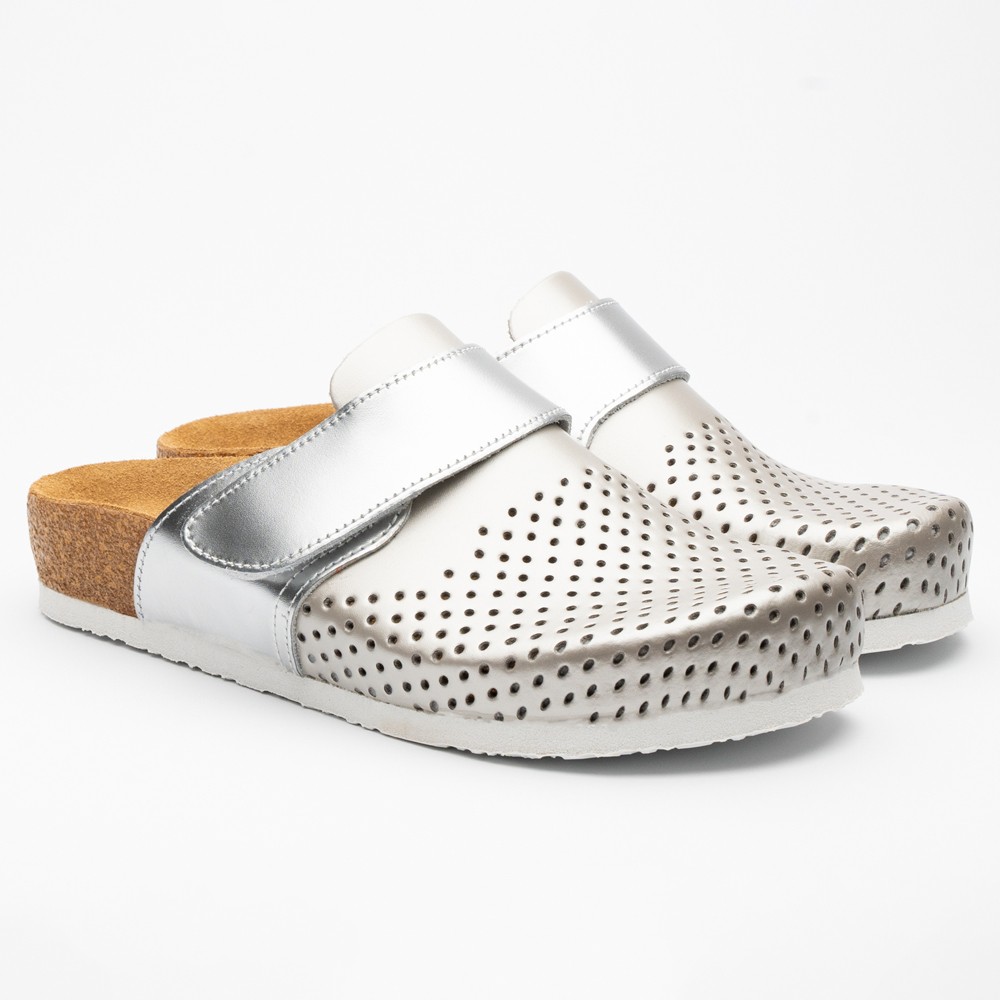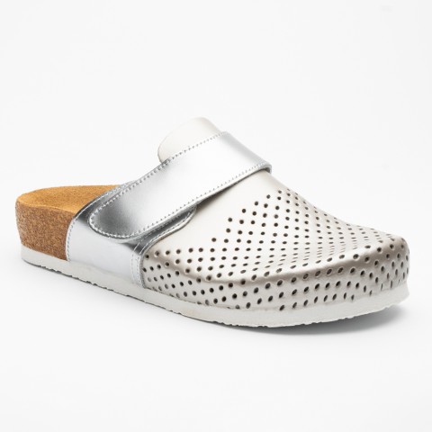 Saboti medicali Leon 4251, de dama, din piele, sampanie/argintiu