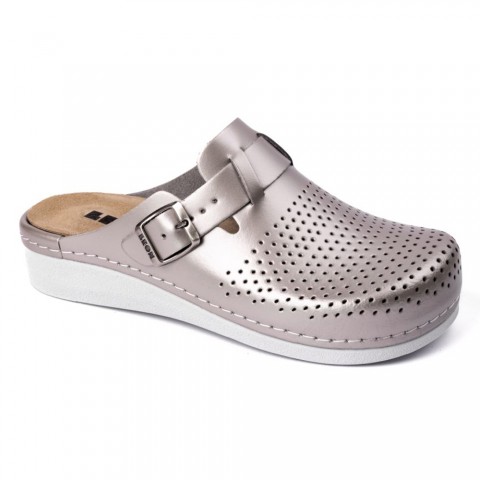 Saboti medicali, de dama, din piele, cu bareta si brant detasabil, Leon 5001, sampanie