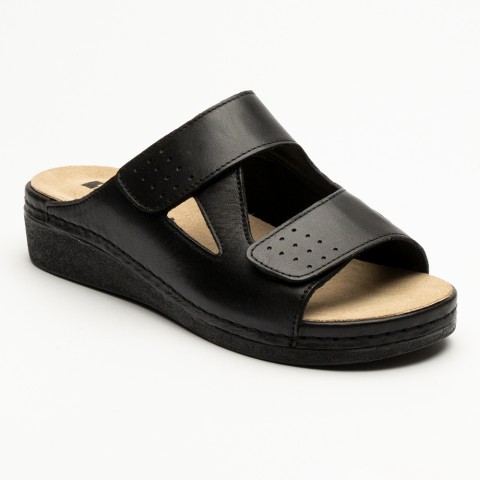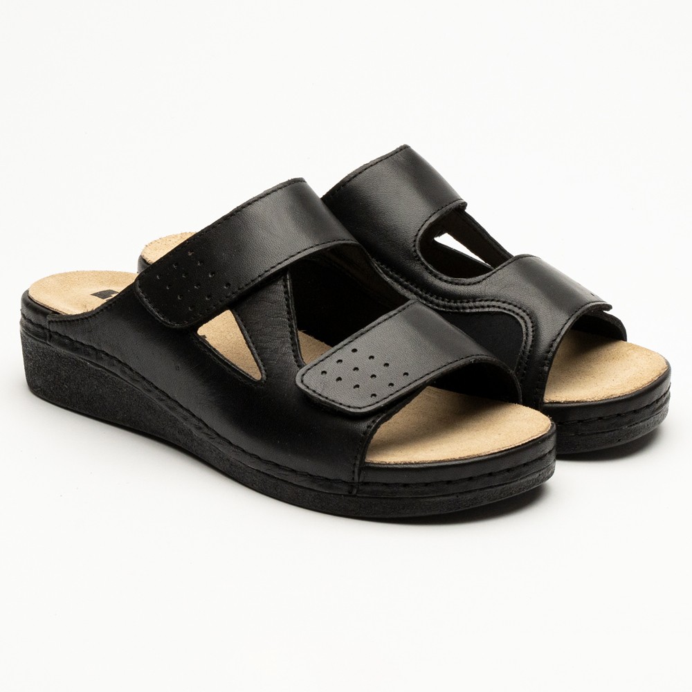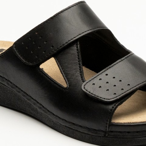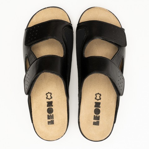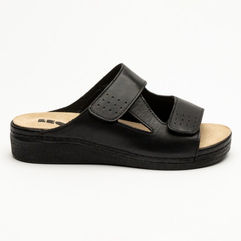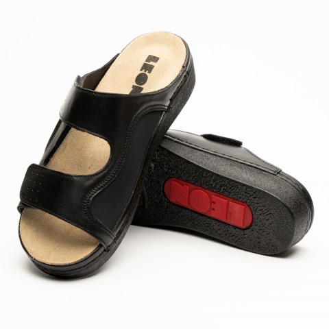 Saboti medicali, de dama, din piele, cu bareta, Leon 5010, negru