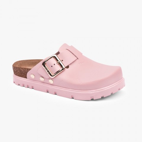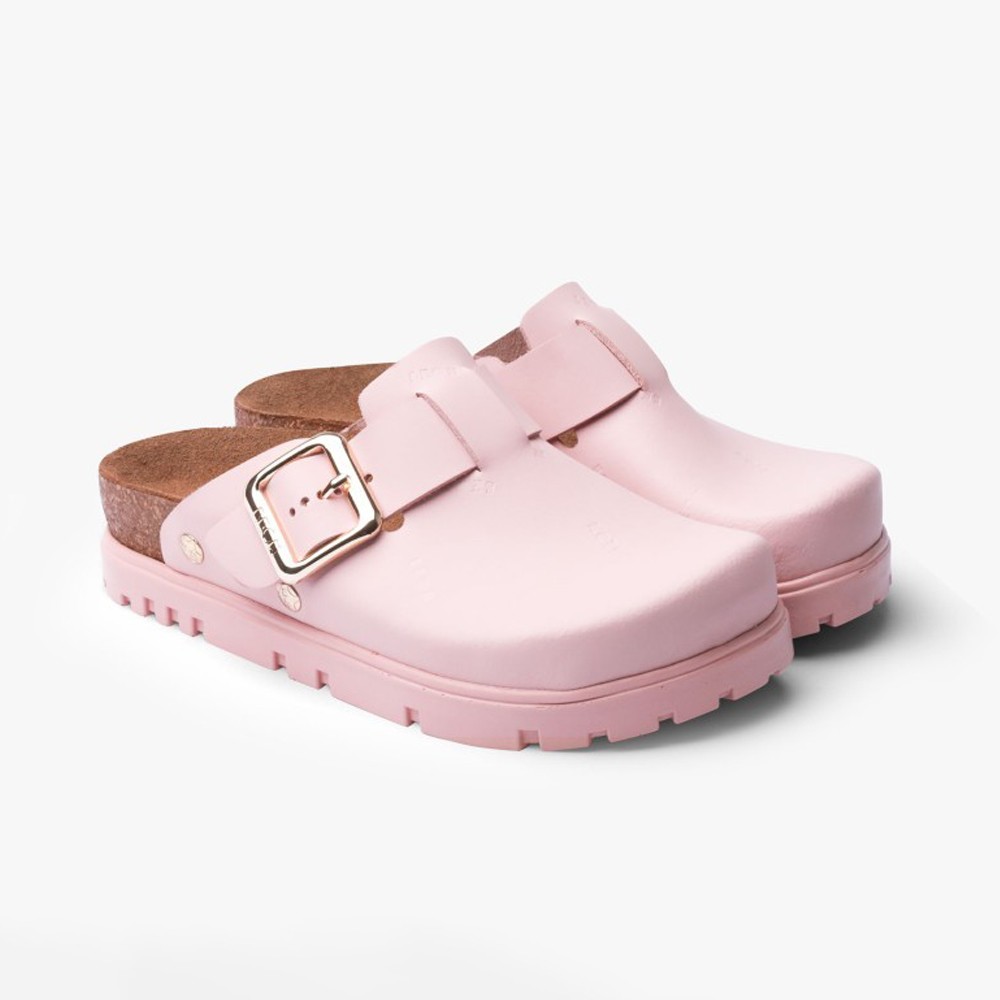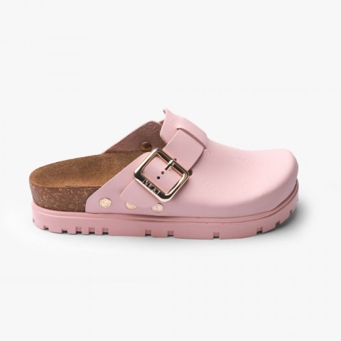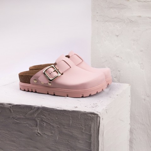 Saboti medicali, de dama, din piele, cu bareta, Leon 6000 Bakkar, roz mat