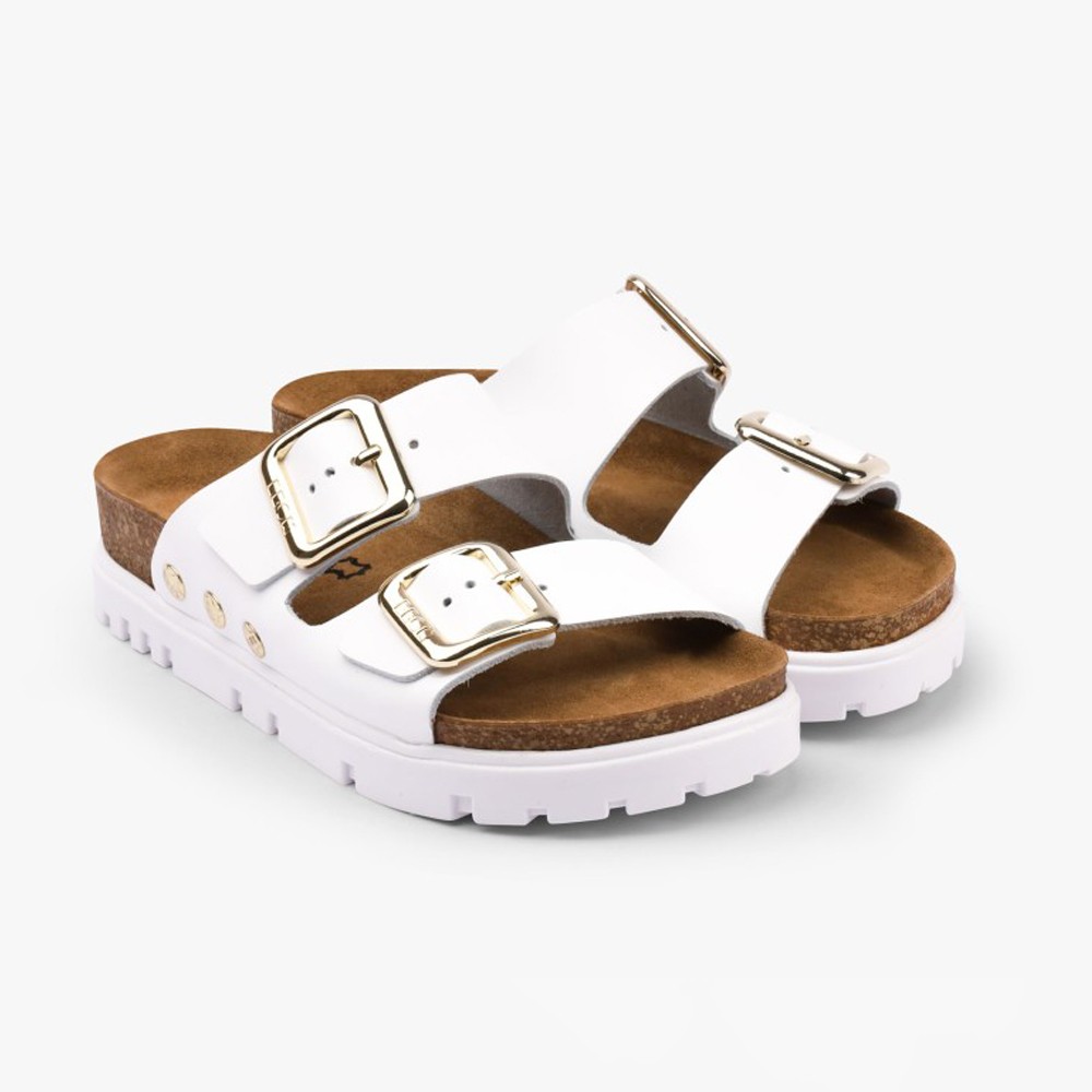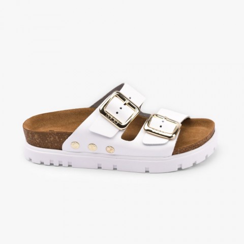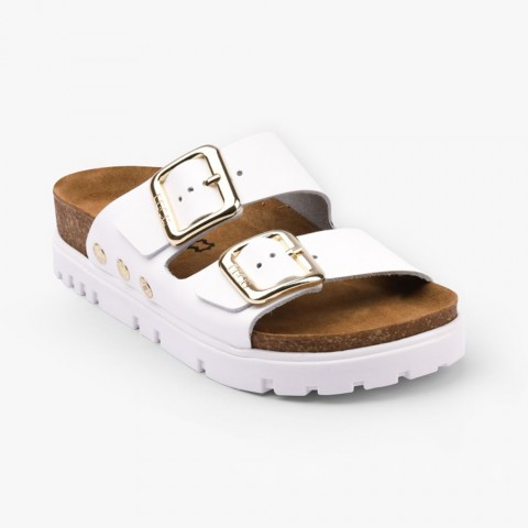 Saboti medicali, de dama, din piele, cu bareta, Leon 6010 Bakkar, alb mat