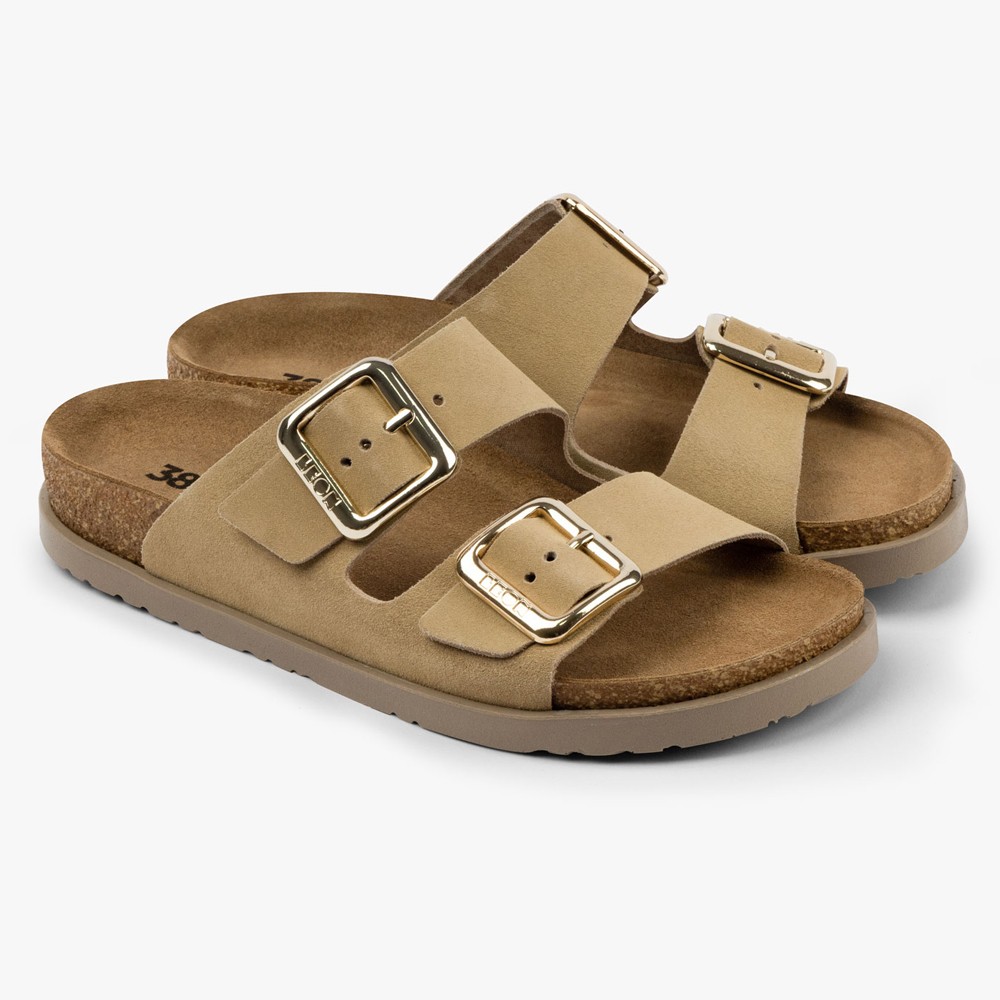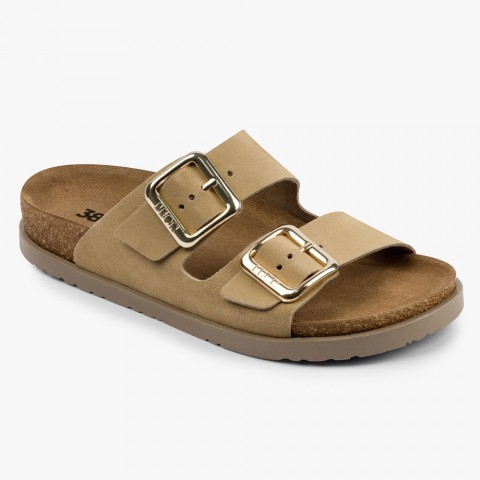 Saboti medicali, de dama, din piele, cu bareta, Leon 7010, bej