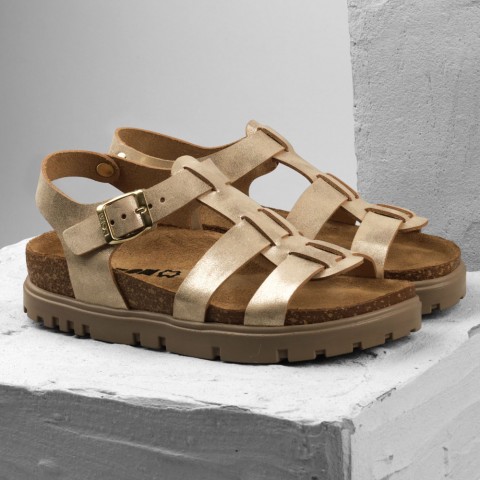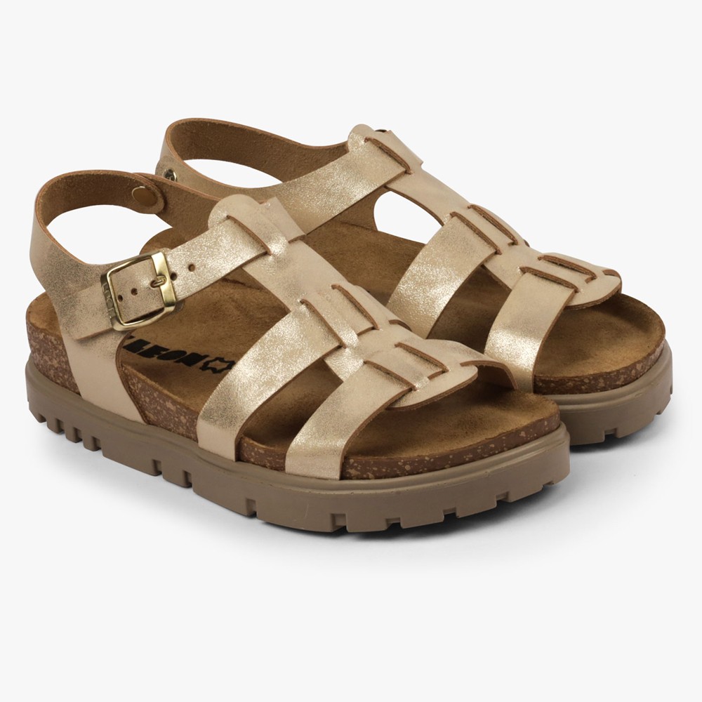 Sandale de dama Leon 6300, de vara, din piele, auriu