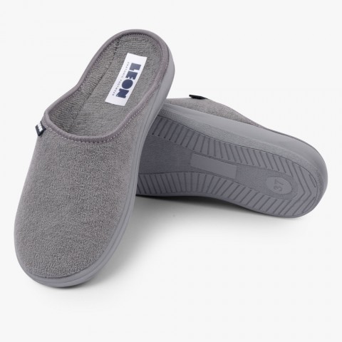 Papuci de casa, din bumbac si poliester, Leon 051, gri