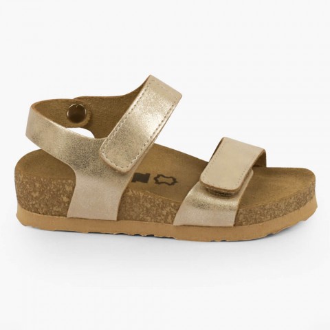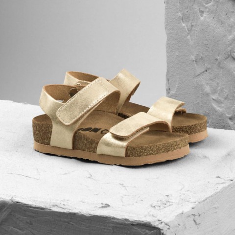 Sandale cu talpa anatomica pentru copii, Leon 4803, din piele naturala, auriu