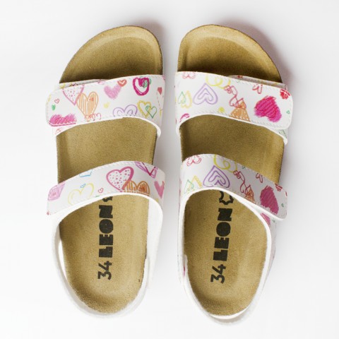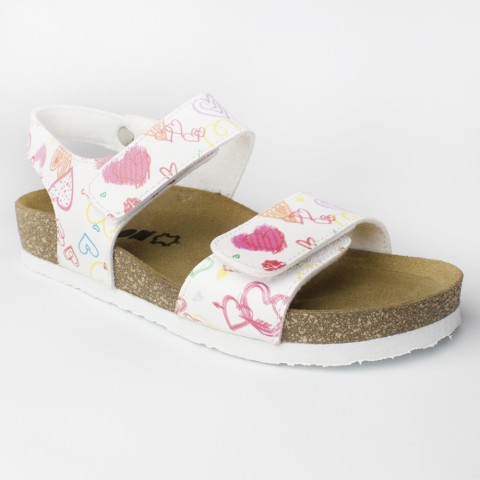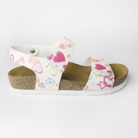 Sandale cu talpa anatomica pentru copii, Leon 4803, din piele naturala, inimioare