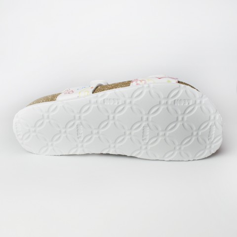 Talpa flexibila din poliuretan cu aspect de pluta si forma anatomica ofera stabilitate si confort la fiecare pas. Baretele reglabile cu banda Velcro permit ajustarea usoara a sandalelor pentru o fixare sigura si potrivita pe piciorul copilului.