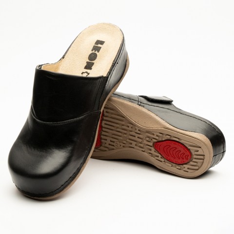 Saboti medicali Leon 2019, de dama, din piele, negru